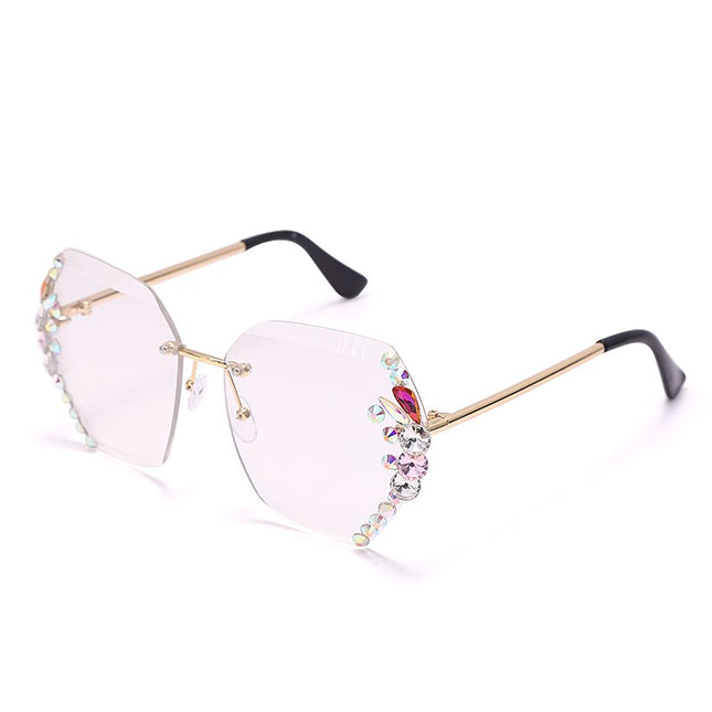 Lunettes de soleil sans monture à motifs de cristaux pour femmes