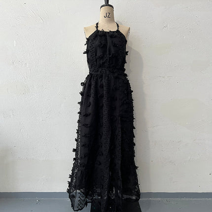 Robe longue brodée européenne et américaine d'automne à dos nu