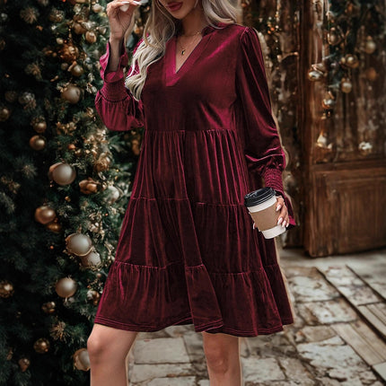 Long Sleeve Christmas Skirt Velvet Cake Dress