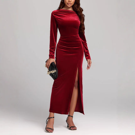 Women's Clothing Slit Formal Dress Pleuche Dress