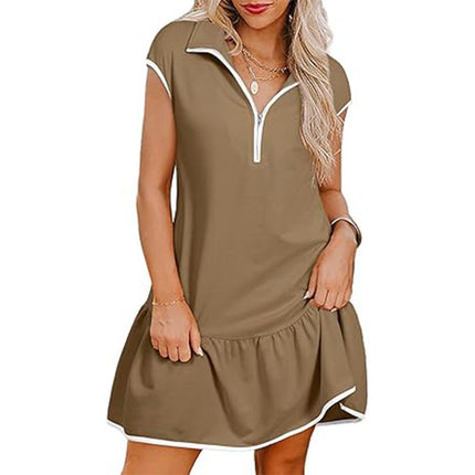 Robe à manches courtes et col polo pour femme avec fermeture éclair à la taille