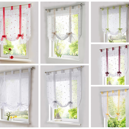 Embroidered Pastoral Adjustable Curtain Rod Ribbon Roman Window Screen