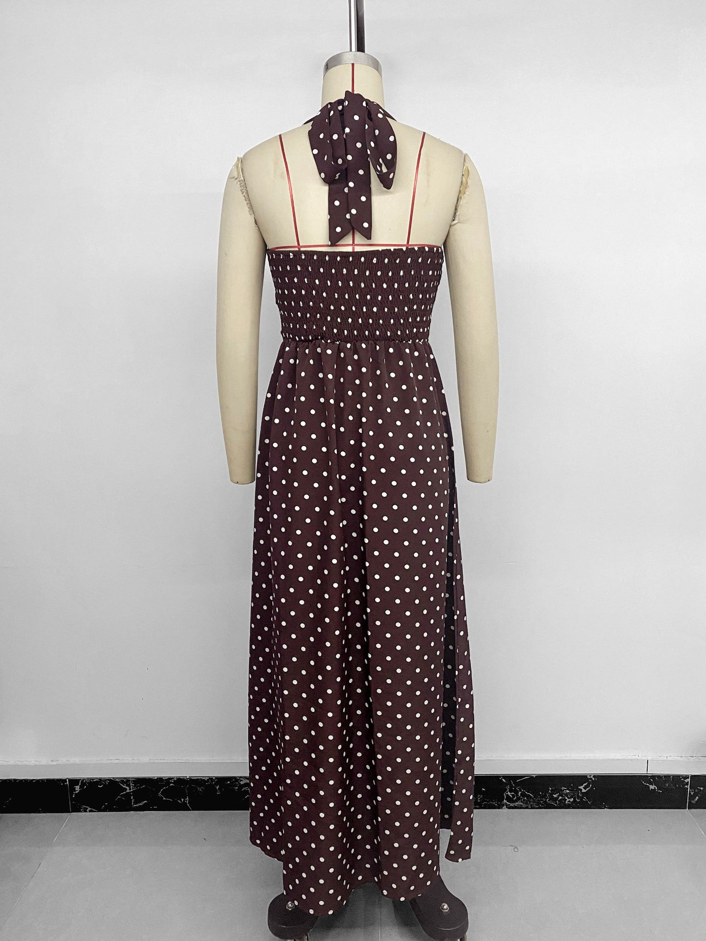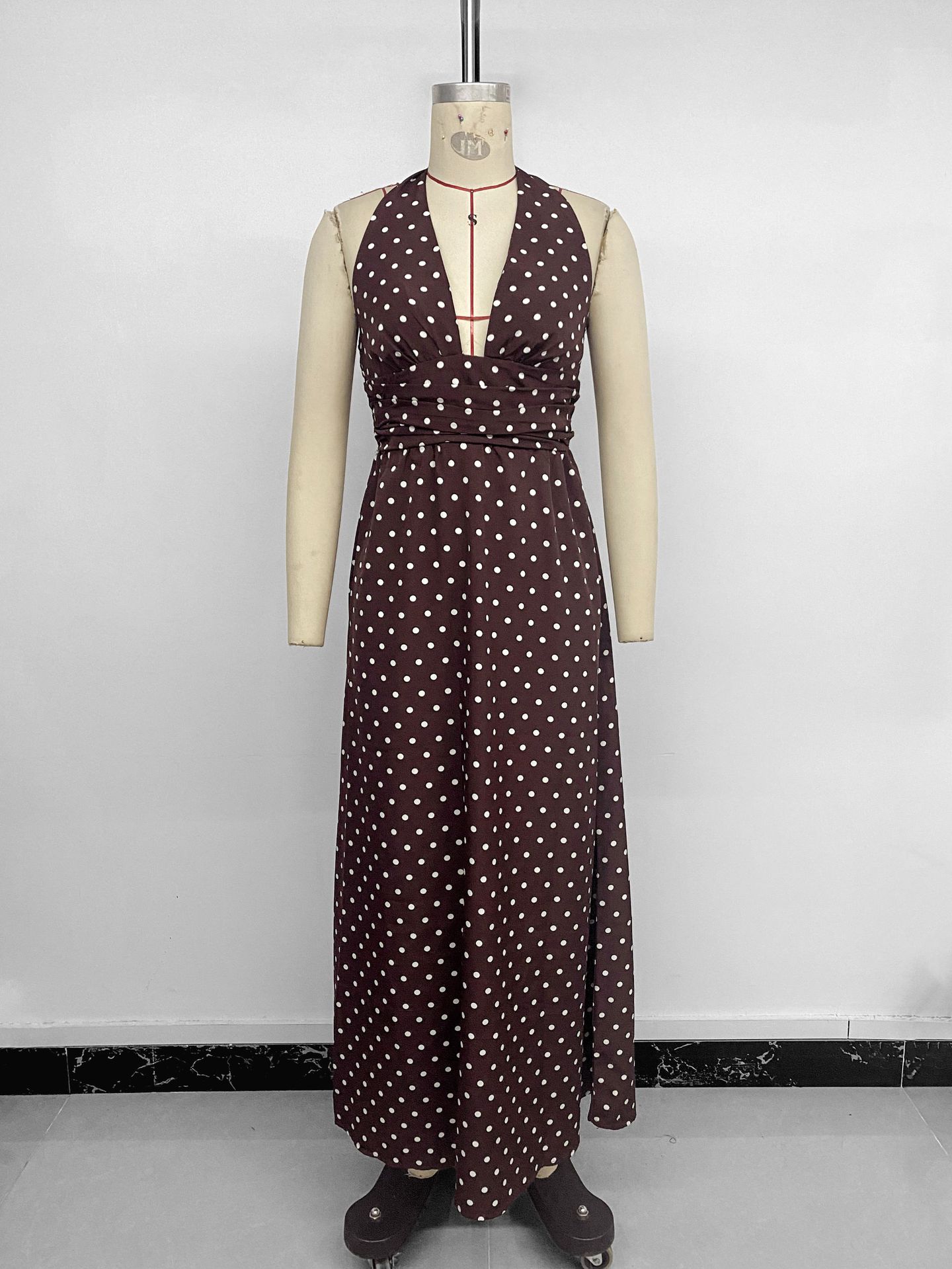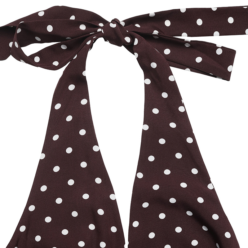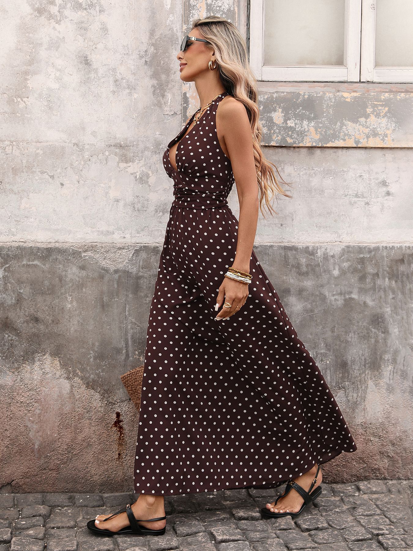 Retro Resort-Style Halterneck V-Neck Polka-Dot Dress