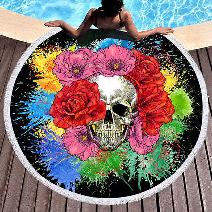 Scary Skull Round Beach Towel Fiber Picnic Mat