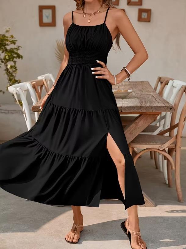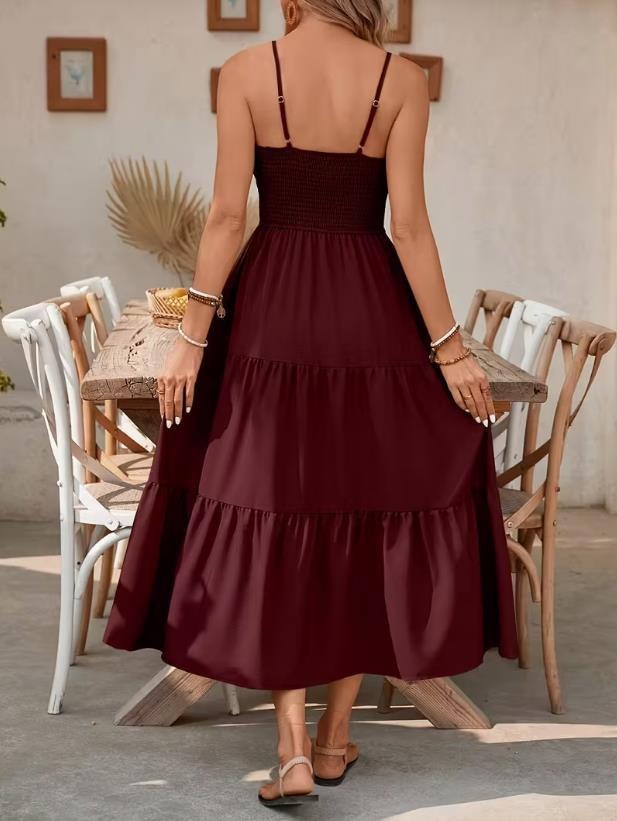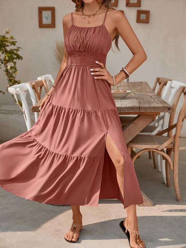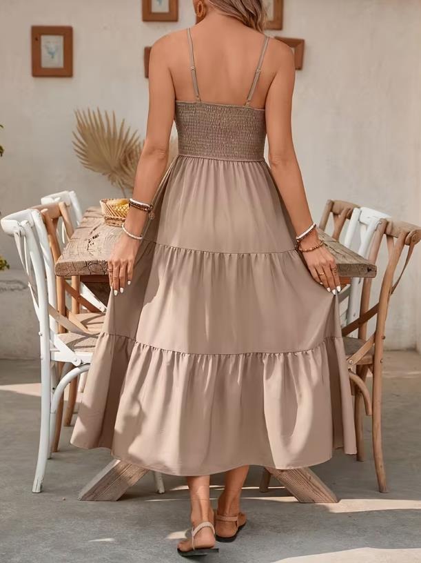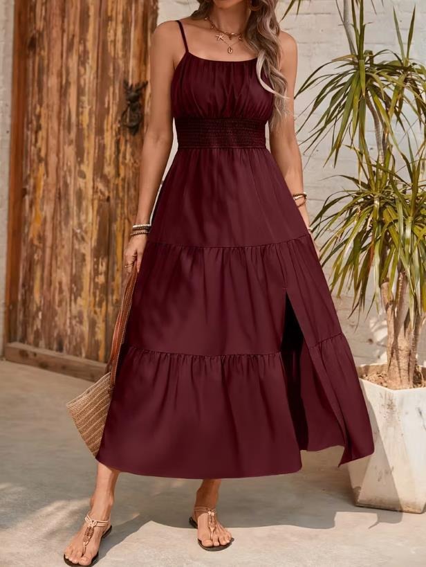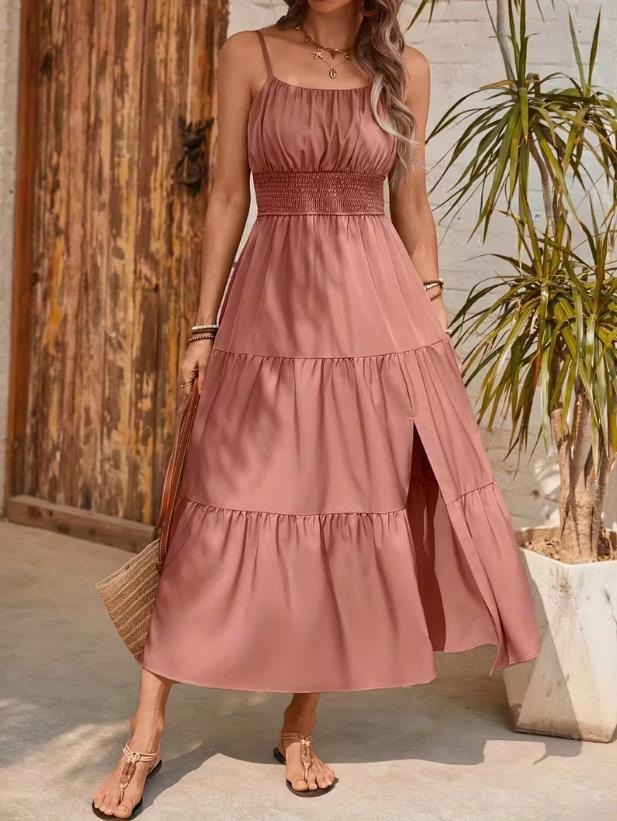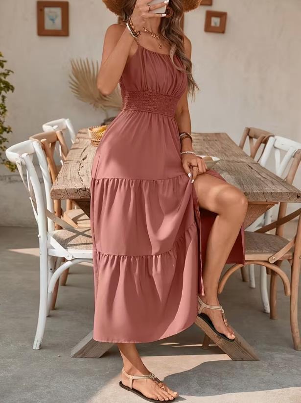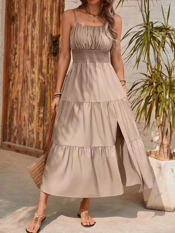 Strapless Layered Waist-cinching Solid-color Slim-fit Dress