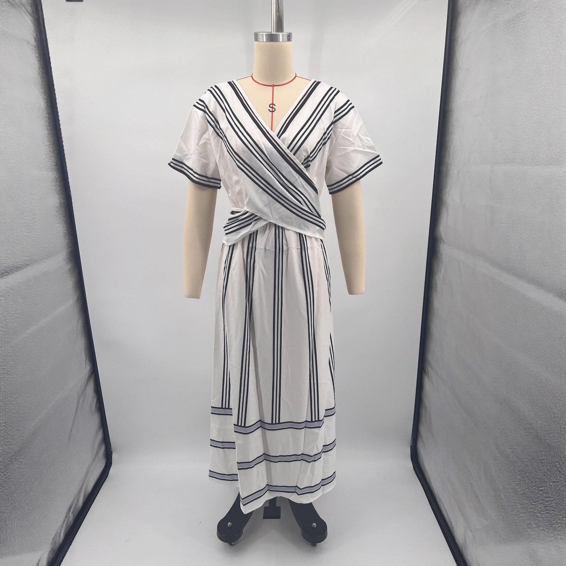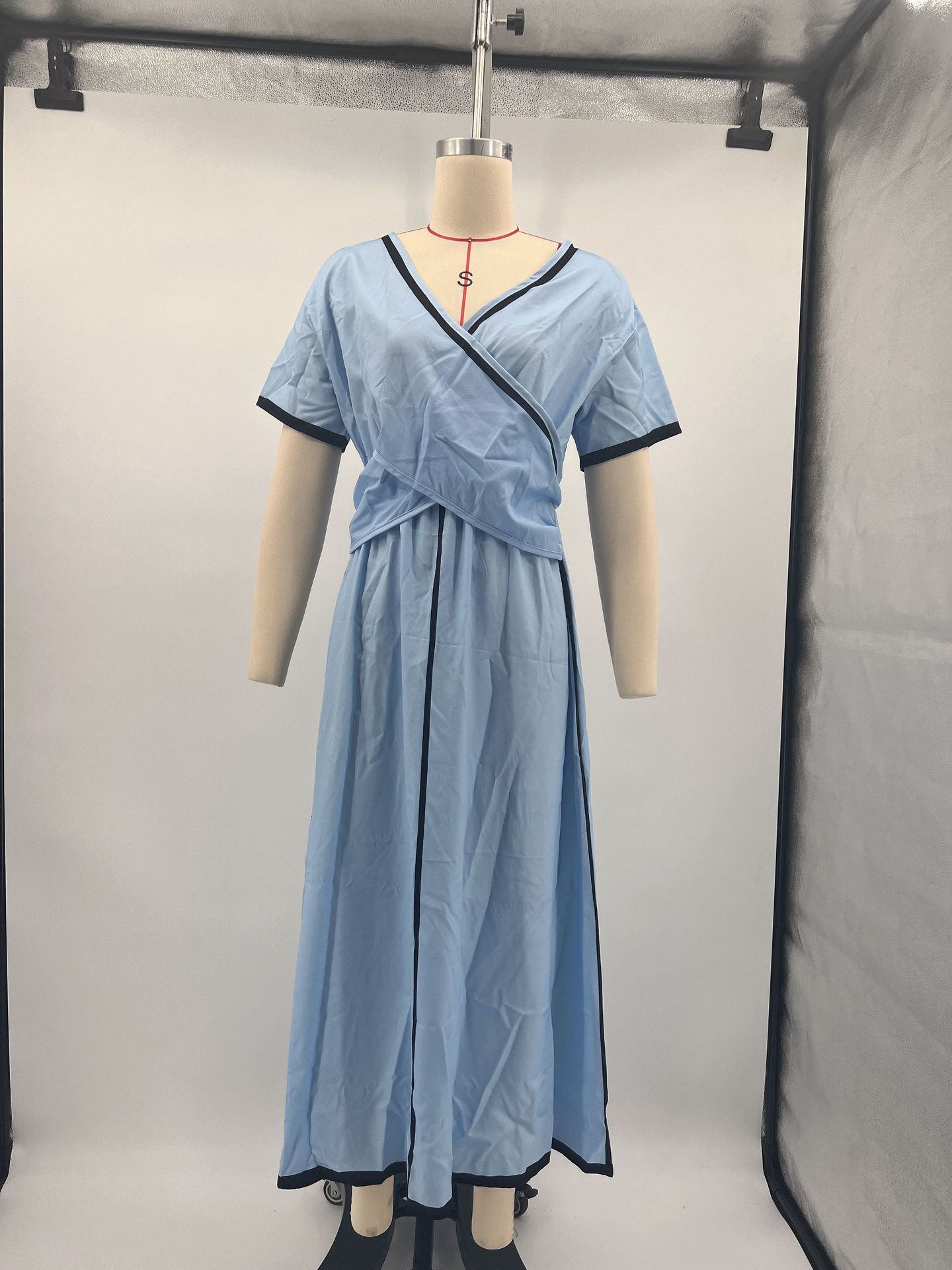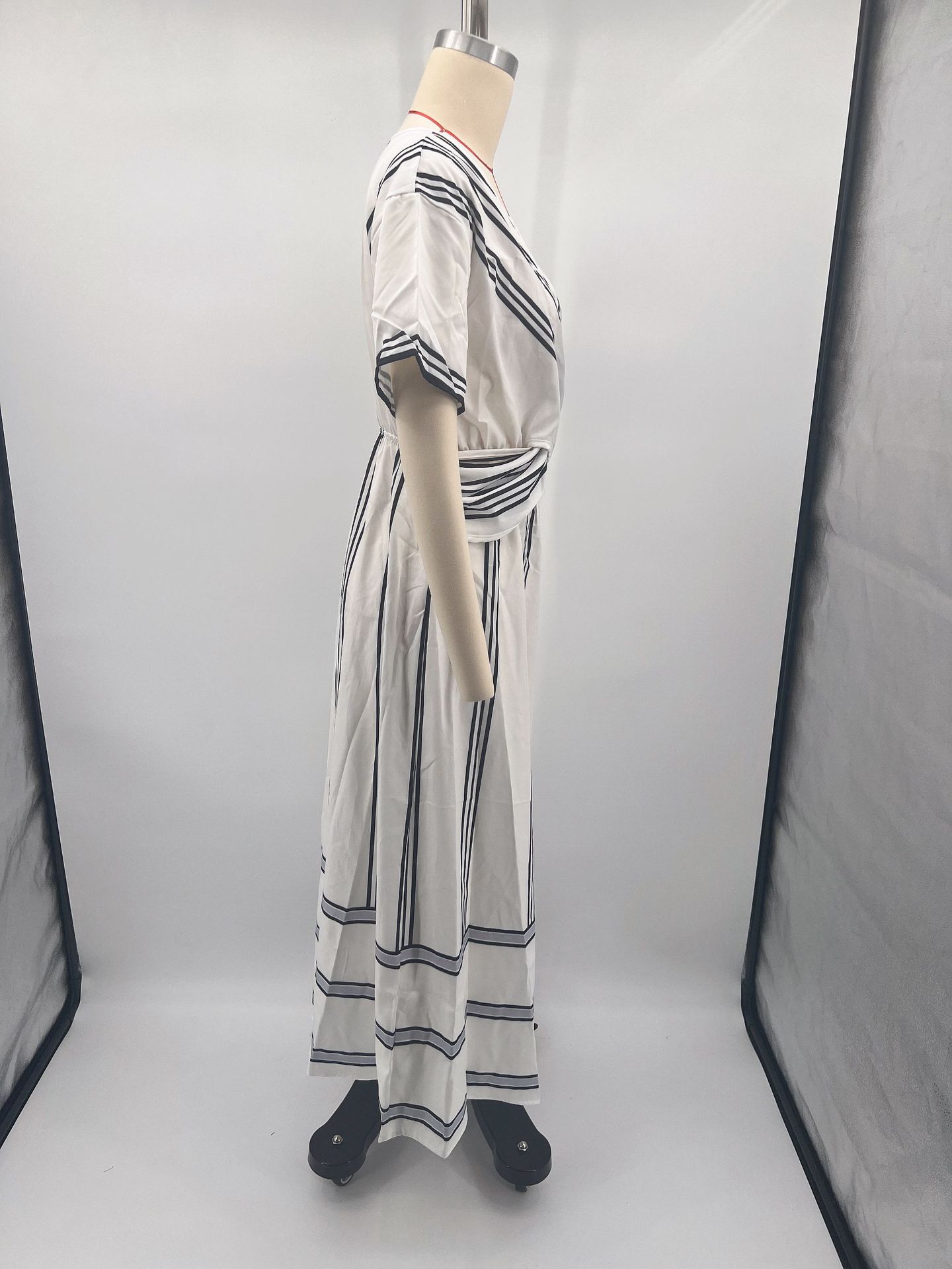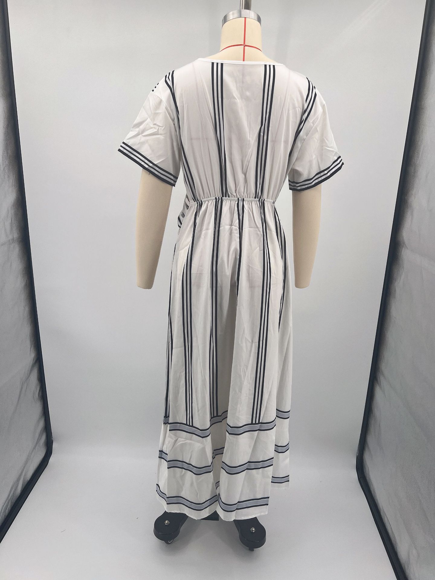 Summer Vacation V-Neck Womens Short-Sleeve Pleated Maxi Dress
