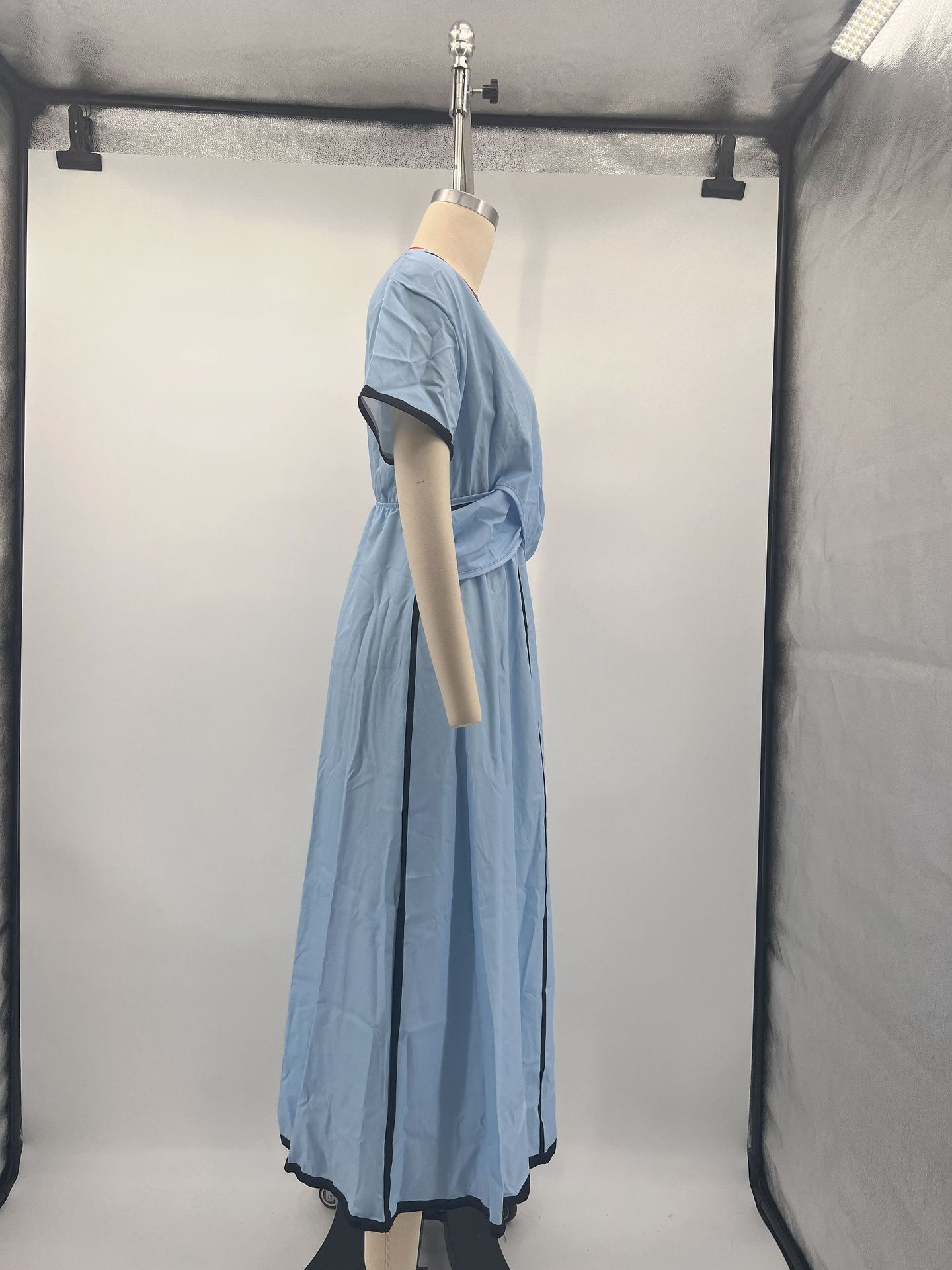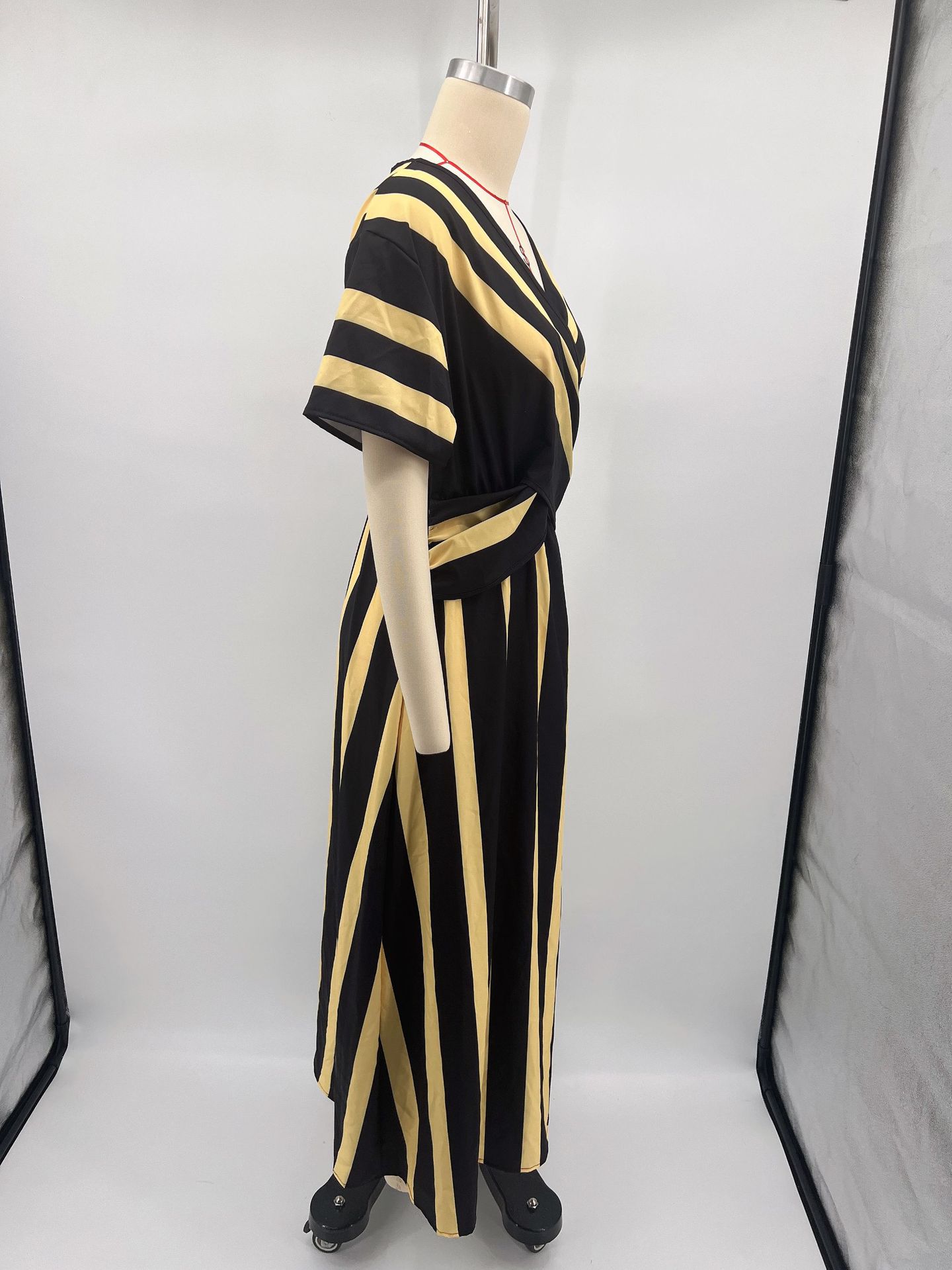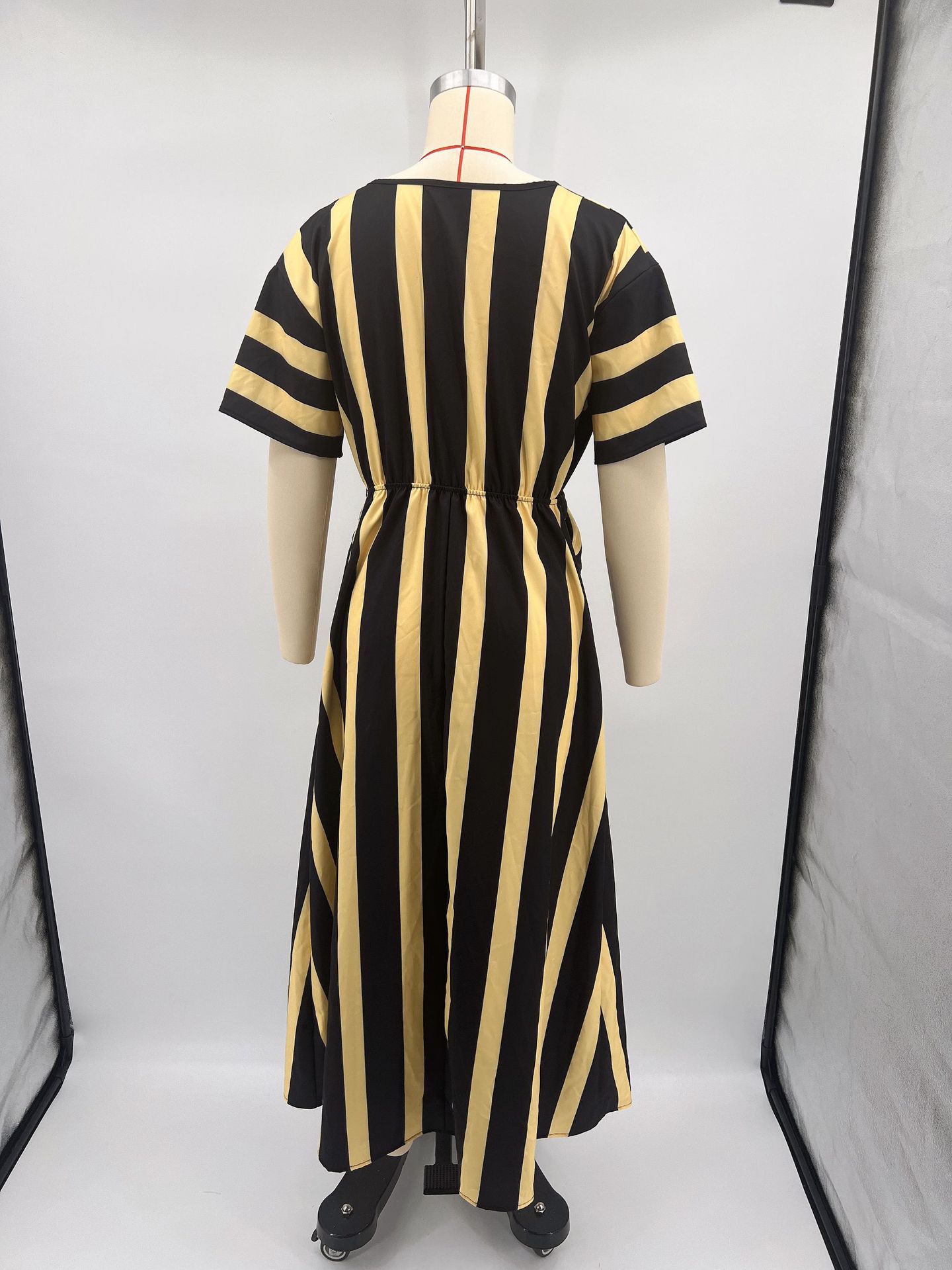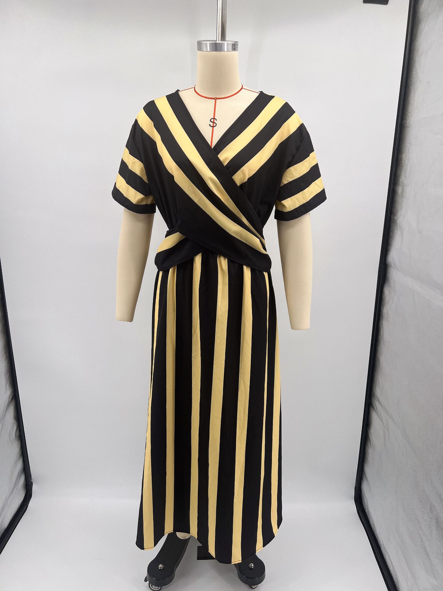 Summer Vacation V-Neck Womens Short-Sleeve Pleated Maxi Dress