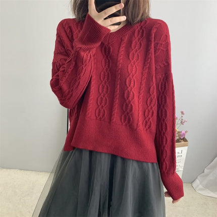 Women's Casual Solid Color V-Neck Long Sleeved Jumper